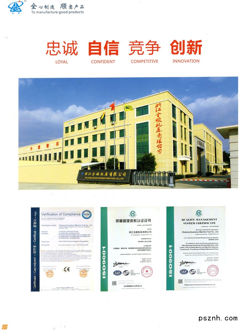 浙江全順機(jī)床有限公司是生產(chǎn)、銷售萬能外圓磨床的專業(yè)企業(yè),擁有四十余年的歷史,,并生產(chǎn)、銷售各類平面磨床、外圓磨床的操縱箱和液壓筒等液壓元件,開發(fā)的“新型耐磨機(jī)床液壓筒”已得到大力推廣,并獲得浙江省金橋工程優(yōu)秀項目獎,同全國著名的磨床公司有穩(wěn)定的配套協(xié)作關(guān)系。公司主要生產(chǎn)M1420H×500、M1420H×800、M1320H×500、M1320H×800、M1432B×1000、M1432B×1500、M1332B×1000、M1332B×1500、M1408×300、M1308×300等磨床,所用鑄件全部來自合資公司(浙江杭機(jī)鑄造有限公司)。秉持“質(zhì)量第一、信譽(yù)第一、服務(wù)第一、”的信念和較高的性價比,產(chǎn)品的市場占有率逐年穩(wěn)定上升。公司擁有強(qiáng)大的設(shè)計隊伍,可根據(jù)客戶的特殊要求,設(shè)計制造各類外圓磨床。公司以“為客戶提供滿意的產(chǎn)品和服務(wù)”作為宗旨,熱忱歡迎國內(nèi)外客商前來洽談和合作