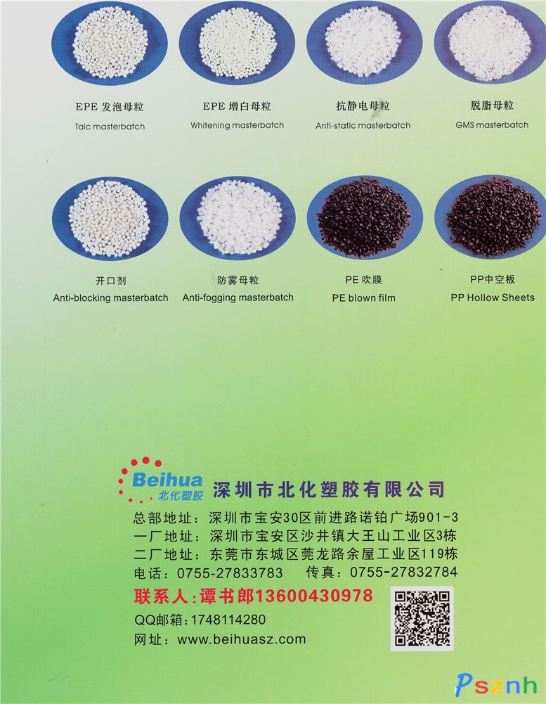 深圳市北化塑膠有限公司 母粒_色母粒_導(dǎo)電料_EPE(珍珠棉)_EPS(廣告板_餐盒)_氣泡膜(氣珠墊)_膠袋_吹瓶_EPE發(fā)泡母粒_PS增白母粒_EPE增白母粒_開口母粒_抗靜電母粒_環(huán)保母粒_增點擊:769 評論:0 查看原圖 |