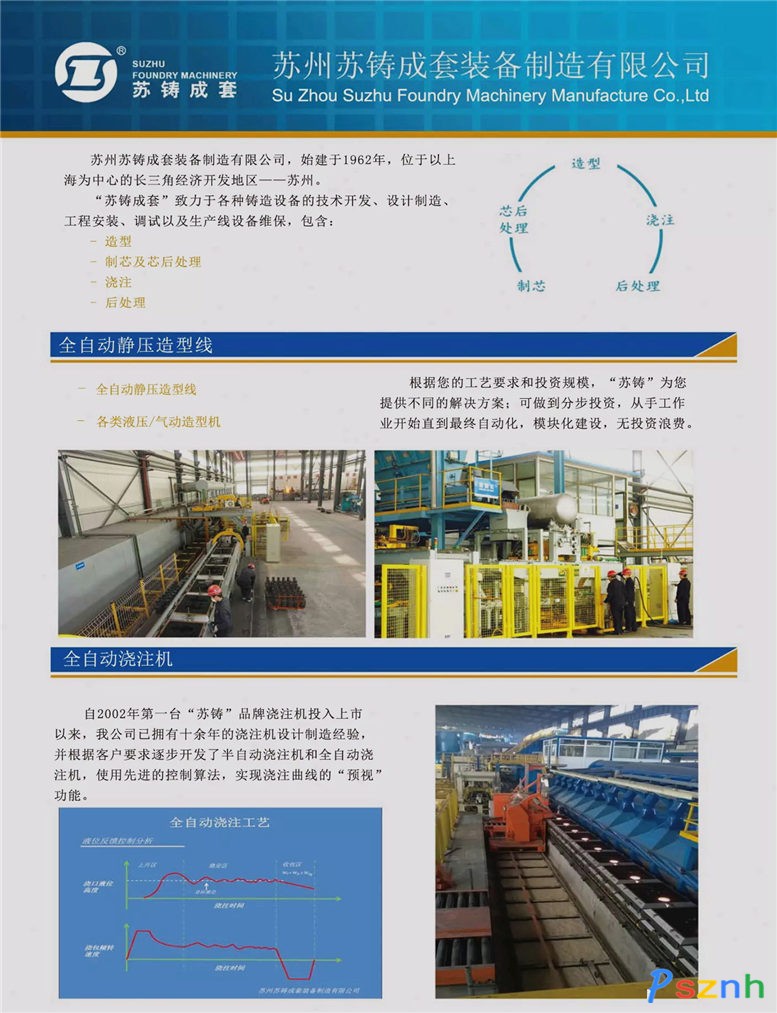 “蘇鑄”是目前國內(nèi)鑄造行業(yè)最具影響力的成套設(shè)備供應(yīng)商。公司的核心產(chǎn)品為造型、制芯設(shè)備。造型設(shè)備包括:全自動靜壓造型線、機(jī)械化造型線、各類微震壓實(shí)造型機(jī)及氣動多觸頭造型機(jī)。制芯設(shè)備包括:完整的制芯中心系統(tǒng)、各類冷芯盒射芯機(jī)、熱芯盒射芯機(jī)及殼芯機(jī)。同時還提供全自動或半自動澆注機(jī)和其它非標(biāo)設(shè)備。
