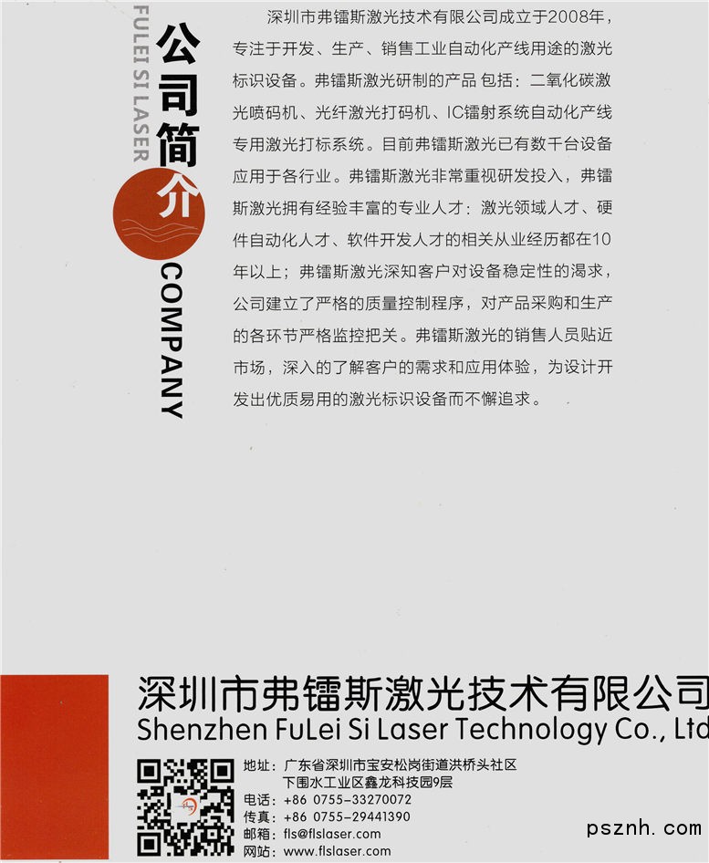 深圳市弗鐳斯激光技術(shù)有限公司是專(zhuān)業(yè)從事激光設(shè)備的研發(fā)、生產(chǎn)、銷(xiāo)售一體的高科技企業(yè)。