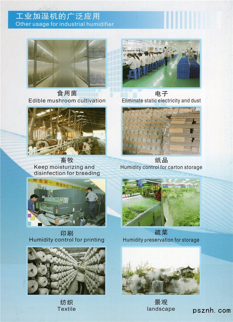 公司致力于食用菌/電子/冷庫/紡織/印刷/紙品/食品/花卉/畜牧/煙草等行業(yè)濕度控制,超市蔬果保鮮,畜牧業(yè)加濕/消毒/降溫,環(huán)保行業(yè)凈化/除臭/香薰,園林造霧景觀/降溫,舞臺造霧等領域的整體解決方案。公司擁有國內(nèi)頂級超聲波霧化、大空間濕度控制、園林霧化景觀等設備的研發(fā)人員,積累了十多年的研發(fā)和生產(chǎn)經(jīng)驗,取得了多項專利技術。且不斷引入先進的技術模式,吸納行業(yè)內(nèi)技術精英,可根據(jù)客戶需求量身定做,最大限度地滿足客戶需求.