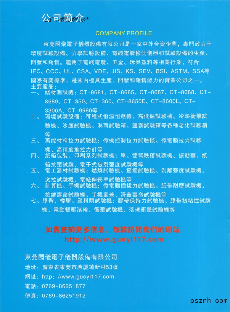 東莞市國儀電子儀器有限公司主要生產(chǎn)銷線線材測試機(jī)CT-8681、CT-8683、CT-8685、CT-8687、CT-8688、CT-8689、CT-350、CT-350、CT-8650E、CT-8600L、CT-9980、TOS-2100及層間耐壓測試機(jī)TF-6815、并代理wayne kerr 變壓器綜合測試機(jī)、阻抗分析儀、LCR電表/電橋、耐壓絕緣測試機(jī)、可程式微歐姆表、電容漏電流測試機(jī)以及國內(nèi)外各種儀器設(shè)備的經(jīng)銷代理,同時(shí)承接各種生產(chǎn)自動(dòng)化,自動(dòng)測試等專案設(shè)計(jì)制做。本公司生產(chǎn)的線材測試機(jī)、層間短路(匝間耐壓)測試機(jī)由於產(chǎn)品好用價(jià)格平廣受各界好評,目前巳擁有超過百分之80%的市場占有率。本公司產(chǎn)品適用于電腦周邊各種連接線,通訊及網(wǎng)絡(luò)周邊連接線,家電及汽車連接線。本公司擁有一流的研發(fā)團(tuán)隊(duì),專為客戶量身訂制各類機(jī)臺(tái),現(xiàn)主要客戶遍佈全國,遠(yuǎn)銷至國外。