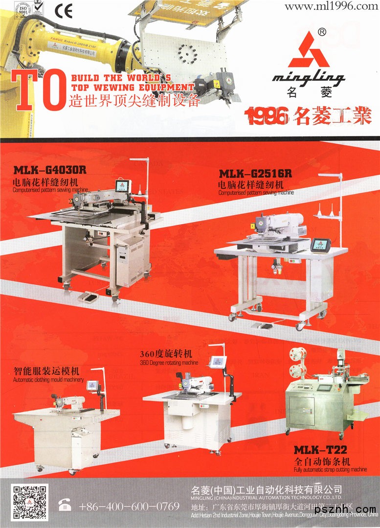 2006年成立正南(中國(guó))精密自動(dòng)化設(shè)備有限公司,主要産銷自主品牌名菱MLK-系列電腦 花樣縫紉,是目前同類産品中較早獲得國(guó)家縫紉機(jī)質(zhì)檢中心質(zhì)量達(dá)標(biāo)的産品之一。我們率先攜同 中國(guó)縫紉機(jī)質(zhì)檢中心,中國(guó)縫制機(jī)械標(biāo)準(zhǔn)化委員會(huì),定制中國(guó)電腦花樣縫紉機(jī)國(guó)家標(biāo)準(zhǔn)。已 通過ISO9001:2008國(guó)際質(zhì)量管理體系及CE認(rèn)證,完全自主研發(fā)的名菱MLK-G控制系統(tǒng)以優(yōu) 良的品質(zhì),穩(wěn)定的性能、高新的技術(shù)含量、超前服務(wù)及合理的價(jià)格,博得全球客戶的壹致青 睞。