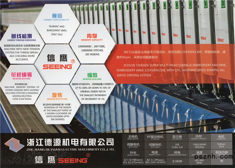 浙江德源機(jī)電有限公司位于浙江省諸暨市江龍工業(yè)園區(qū),集研發(fā)、產(chǎn)銷、服務(wù)于一體,是專業(yè)生產(chǎn)電腦繡花機(jī)的高科技企業(yè)、廠區(qū)占地八萬(wàn)平方米,建筑面積達(dá)五萬(wàn)多平方米,員工三百余人,具有年生產(chǎn)電腦繡花機(jī)三千臺(tái)的成產(chǎn)能力。屬浙江省規(guī)模較大的電腦繡花機(jī)生產(chǎn)企業(yè)。