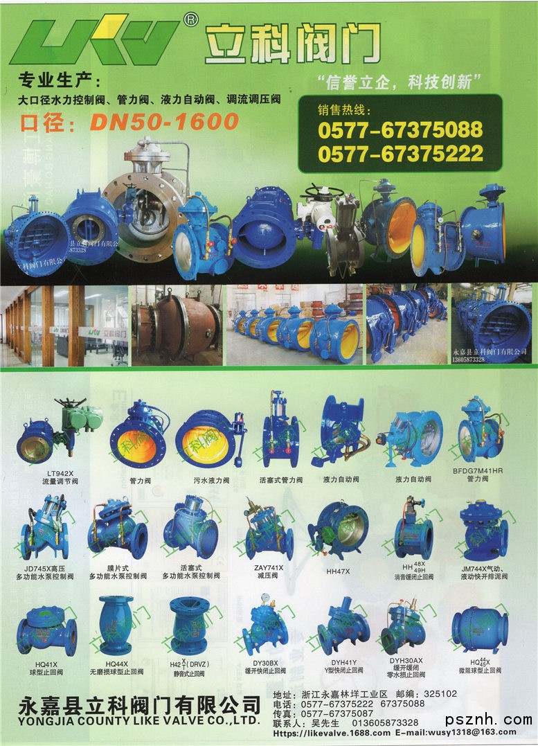 永嘉縣立科閥門有限公司是一家專業(yè)從事閥門設(shè)計(jì),開發(fā), 制造, 銷售為一體的股份制造合作企業(yè),坐落在永嘉縣甌北鎮(zhèn)馬岙工業(yè)區(qū),是一家專業(yè)生產(chǎn)各種;閘閥,截止閥,止回閥,球閥,蝶閥,管力閥,液力自動(dòng)閥,鍛鋼閥,不銹鋼閥,BFDZ701X液力自動(dòng)控制閥,BFDG7M41HR管力閥,H42T靜音止回閥,HH48X微阻緩閉止回閥,HQ44X球型止回閥,YX741X可調(diào)式減壓穩(wěn)壓閥,ZAX742X安全泄壓閥,ZJ145X電動(dòng)遙控閥,F745X水力(遙控)浮球閥,JD745X多功能水泵控制閥,DY30AX緩開緩閉多功能止回閥,DY30BX緩開快閉多功能止回閥,JD745X高壓多功能水泵控制閥,HH47X消聲微阻緩閉止回閥,JM744X膜片式液壓,氣動(dòng)角式快開排泥閥,100X遙控浮球閥,200X減壓閥,300X緩閉止回閥,400X流量控制閥,500X泄壓持壓閥,600X水力控制閥,700X水泵控制閥,800X壓差旁通平衡閥,900X緊急關(guān)閉閥等。公司設(shè)有生產(chǎn)部,技術(shù)部,品管部,銷售部,財(cái)務(wù)部等部門。是一家科研,開發(fā),生產(chǎn),銷售,服務(wù)與一體的現(xiàn)代化企業(yè)。不斷采用新技術(shù),新工藝,新材料,積極開發(fā)新產(chǎn)品,為建設(shè)現(xiàn)代化閥門企業(yè)而努力奮斗。經(jīng)過不不惜努力,公司產(chǎn)品銷售覆蓋大江南北,深得廣大用戶信賴與和評(píng)。公司堅(jiān)持貫徹質(zhì)量第一,服務(wù)周到為經(jīng)營(yíng)目的,可以可靠性,可用性為目標(biāo)創(chuàng)建一流名牌,以優(yōu)惠的價(jià)格,良好的售后服務(wù)為廣大新老用戶服務(wù)。