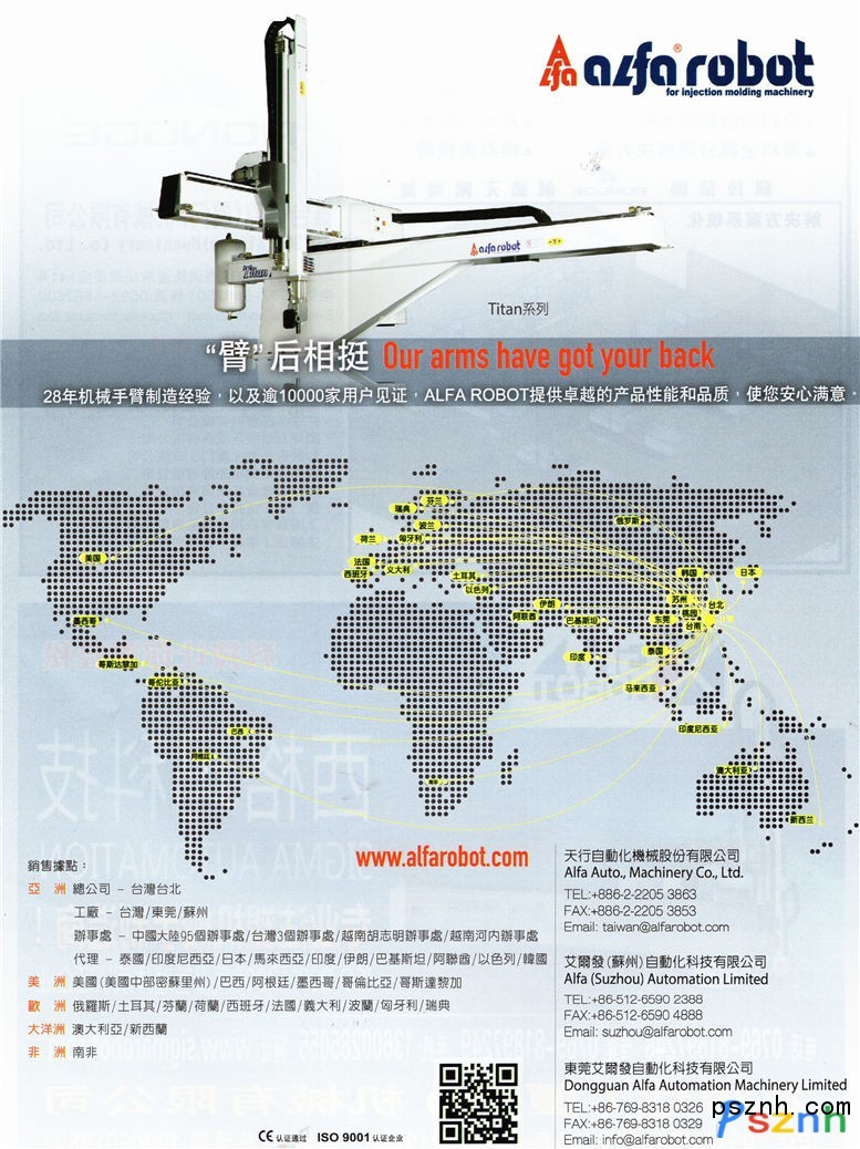 1988 創(chuàng)立于臺灣桃園,資本額988萬臺幣。以生產(chǎn)塑料射出成型機械手為主。
