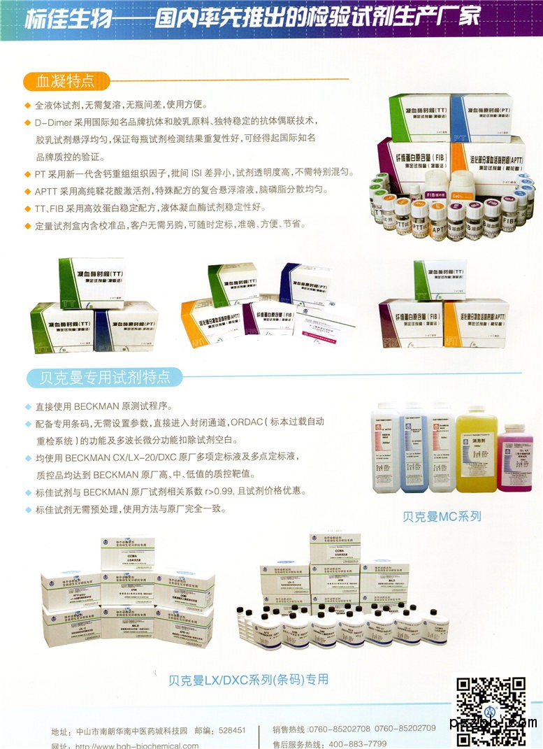 自一九九三年公司成立以來,每年堅(jiān)持參加衛(wèi)生部質(zhì)評(píng)均被評(píng)為優(yōu)秀成績(jī)。為適應(yīng)市場(chǎng)需要,公司研發(fā)出高品質(zhì)新一代液體試劑盒,適用于各系列生化分析儀器,產(chǎn)品經(jīng)全國(guó)多家醫(yī)院使用均受到臨床好評(píng)。其中優(yōu)勢(shì)產(chǎn)品Beckman系列機(jī)型全套試劑,配備專用條碼,無需調(diào)試參數(shù)可直接上機(jī)使用,已具備與Beckman原廠相同的功能,是國(guó)內(nèi)唯一配備條碼的試劑,并可提供Beckman儀器上的原裝零配件及配備專業(yè)工程師為客戶解決后顧之憂。