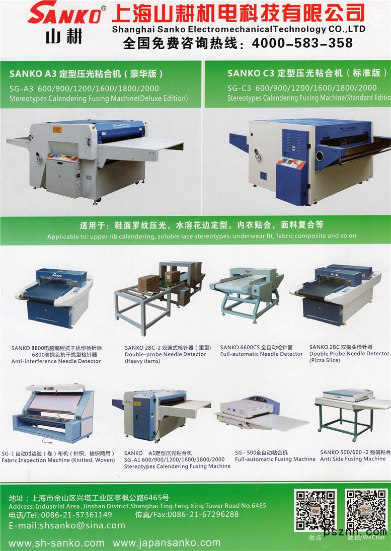 上海山耕機(jī)電科技有限公司是專業(yè)生產(chǎn)金屬檢測機(jī)、檢針機(jī),粘合機(jī)、鞋面羅紋壓光機(jī)、水溶花邊定型機(jī),驗布機(jī)等一系列機(jī)械設(shè)備生產(chǎn)制造商,是從事技術(shù)開發(fā)、產(chǎn)品生產(chǎn)、銷售、服務(wù)為一體的高科技企業(yè)。