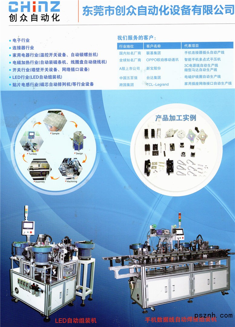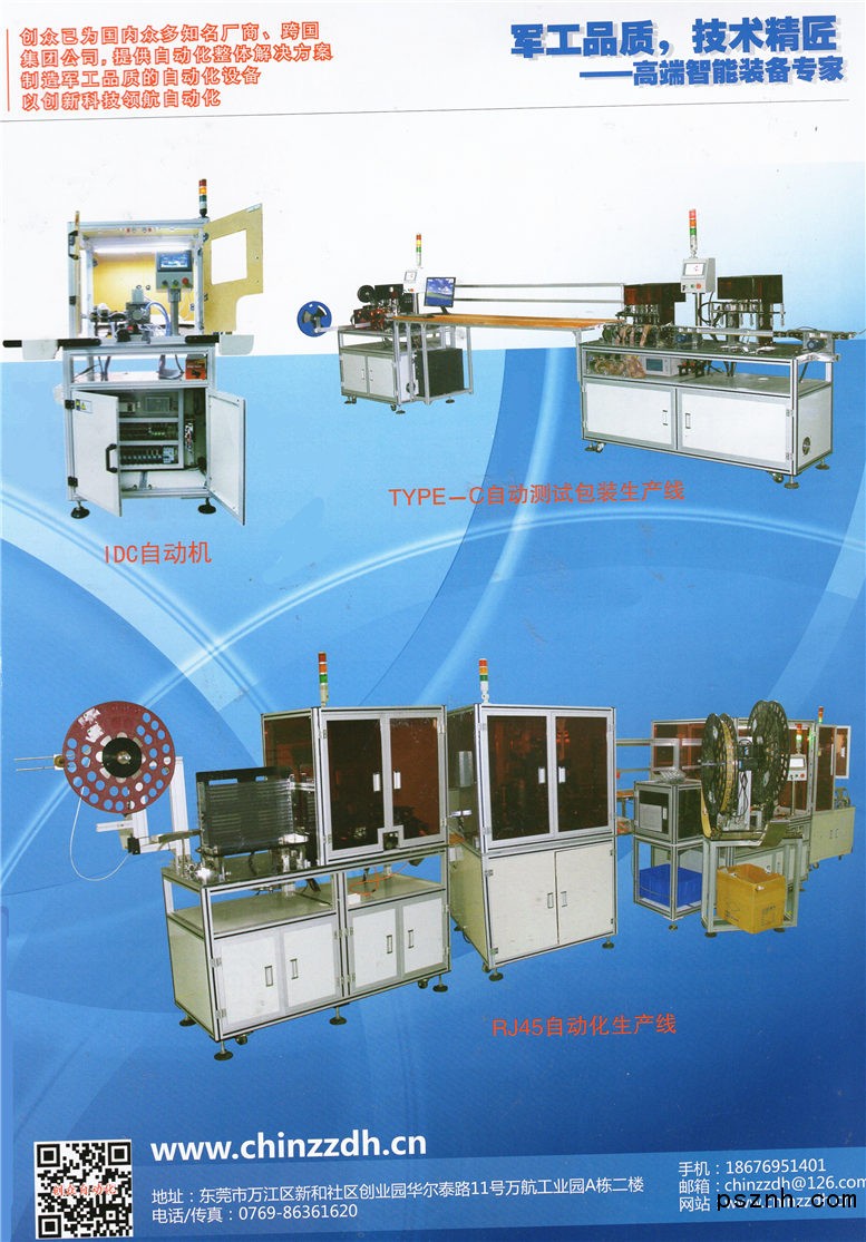 東莞市創(chuàng)眾自動化設(shè)備有限公司始創(chuàng)于2007年,具有多年的自動化設(shè)備行業(yè)經(jīng)驗,是行業(yè)領(lǐng)先的專業(yè)非標(biāo)自動化設(shè)備制造商之一;創(chuàng)眾致力于為客戶提供全面的自動化設(shè)備解決方案;公司坐落于東莞機械設(shè)備裝備重鎮(zhèn)—石碣,主營非標(biāo)自動化設(shè)備,服務(wù)項目涉足電子、連接器、五金、醫(yī)療、家電等行業(yè)。 公司自涉足非標(biāo)行業(yè)以來,先后成功為大小知名企業(yè)提供一百余臺專業(yè)定制非標(biāo)設(shè)備,為法國在華集團(tuán)公司提供產(chǎn)品開發(fā)與機器設(shè)計,客戶一致好評。多年的行業(yè)經(jīng)驗、強大的研發(fā)設(shè)計能力、加工制造能力是我們的核心競爭力;我們?yōu)榭蛻籼峁┩晟频氖酆蠓?wù),全面的自動化設(shè)備解決方案。 公司主要開發(fā)設(shè)備: 1)基于客戶需求的專業(yè)定制非標(biāo)自動化設(shè)備,研發(fā)、生產(chǎn)、制造; 2)貼片電感排料機、USB自動組裝機、電磁爐自動繞線機、開關(guān)類五金類自動組裝機、電子產(chǎn)品插PIN插端機、銀點機、鉚接機、連接器組裝設(shè)備、測試檢測機器、自動化生產(chǎn)線,等 3)客戶特殊要求的其他專業(yè)定制設(shè)備。 以及,工控設(shè)備代理與技術(shù)支持:可編程PLC、觸摸屏、變頻器、伺服系統(tǒng)、馬達(dá)、傳感器、繼電器、氣動元件、導(dǎo)軌、開關(guān)電源等。 創(chuàng)眾為您提供滿意的自動化設(shè)備,與您攜手共贏!