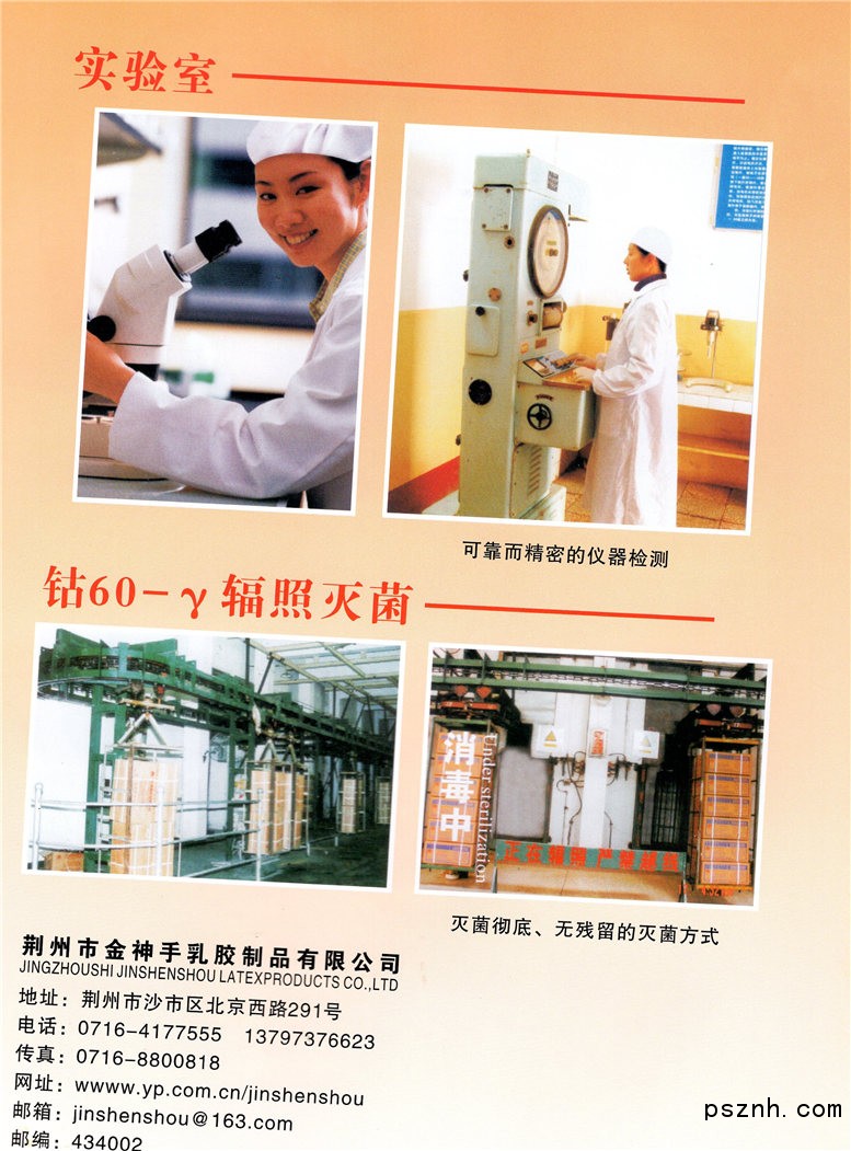 公司主要按國際標準,國家GB標準生產(chǎn)高品質(zhì)的“金神手”橡膠醫(yī)用手套、一次性衛(wèi)生檢查手套、膠管、高檔醫(yī)用床墊、勞保手套和汽車密封條。其中醫(yī)用手套、檢查手套的消毒是國內(nèi)唯一一家采用高科技鈷60γ輻射的企業(yè),消毒后的產(chǎn)品無殘留、不發(fā)黃、耐老化、無過敏。