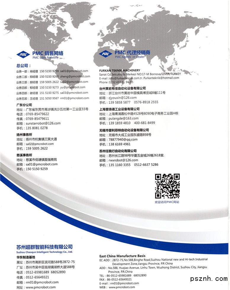 國際領(lǐng)先的技術(shù)性能+日系頂級的產(chǎn)品品質(zhì)+系列家族式漂亮外形設(shè)計+日系精英團(tuán)隊(duì),蘇州超群智能科技有限公司(PMC)志在成為全球前3位品牌的直角坐標(biāo)式機(jī)器人制造商。PMC坐標(biāo)式機(jī)器人技術(shù)性能和歐美3大品牌同檔次,是中國區(qū)(含臺灣)唯一一家技術(shù)與品質(zhì)可以和日本、歐美大牌競爭的機(jī)械手品牌,全系列機(jī)器人通過歐盟CE認(rèn)證,機(jī)器人已批量出口到歐美市場。多關(guān)節(jié)機(jī)器人已研制多年,進(jìn)入試產(chǎn)階段。