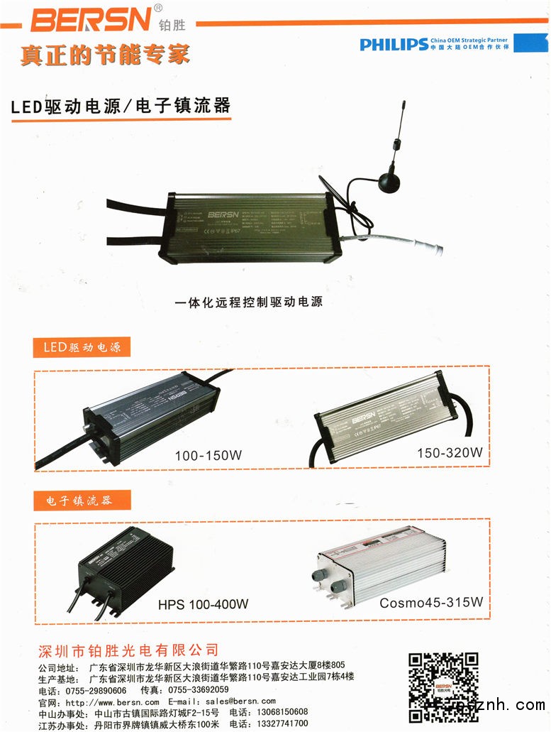 深圳市鉑勝光電有限公司是國(guó)家提出的節(jié)能環(huán)保新能源照明新興企業(yè),是集研發(fā)、生產(chǎn)和銷售于一體的綜合性照明企業(yè),是飛利浦中國(guó)大陸OEM戰(zhàn)略合作伙伴,產(chǎn)品涵蓋飛利浦高效光源、HID&LED光源配套電器、節(jié)能一體化照明燈具以及GPRS遠(yuǎn)程路燈遙控、計(jì)量系統(tǒng)等。