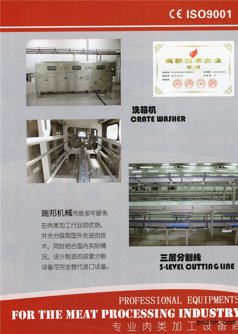 浙江瑞邦智能裝備股份有限公司,專業(yè)從事肉類加工裝備的屠宰分割設(shè)備、智能輸送線及肉類深加工設(shè)備等研究、開(kāi)發(fā)與制造,于2008年成為行業(yè)內(nèi)首家國(guó)家級(jí)高新技術(shù)企業(yè)。