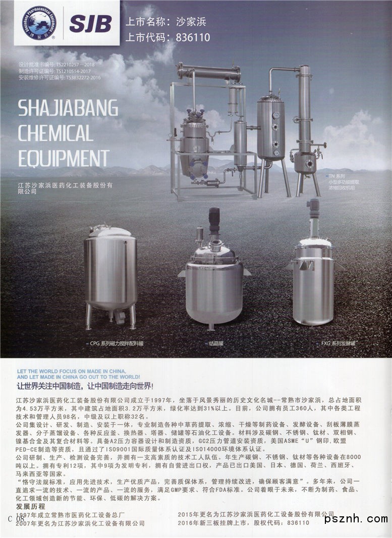 江蘇沙家浜醫(yī)藥化工設(shè)備有限公司(常熟醫(yī)藥化工設(shè)備總廠,沙家浜藥機(jī))成立于1978,位于沙家浜常熟市,這是一個(gè)美麗的歷史文化名城。是一家從事石油化工、生物工程、真空制鹽、化纖、制藥、食品等行業(yè)的設(shè)計(jì)、開(kāi)發(fā)、制造、安裝的民營(yíng)科技企業(yè)。產(chǎn)品已出口到美國(guó)、日本、德國(guó)、荷蘭和西班牙。,馬來(lái)西亞和其他國(guó)家。