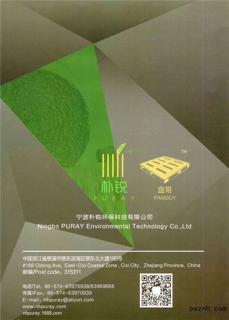 寧波樸銳環(huán)保科技有限公司是國(guó)內(nèi)首家獨(dú)資創(chuàng)立的高科技綠色環(huán)保企業(yè),位于長(zhǎng)江三角洲的核心城市—寧波,占地面積1.9萬(wàn)平方米。公司以國(guó)內(nèi)幾大知名農(nóng)業(yè)大學(xué)為技術(shù)依托,一直致力于再生資源循環(huán)利用應(yīng)用領(lǐng)域的研究,在環(huán)保托盤(pán)研發(fā)設(shè)計(jì)及生產(chǎn)線革新方面取得了卓越成就。