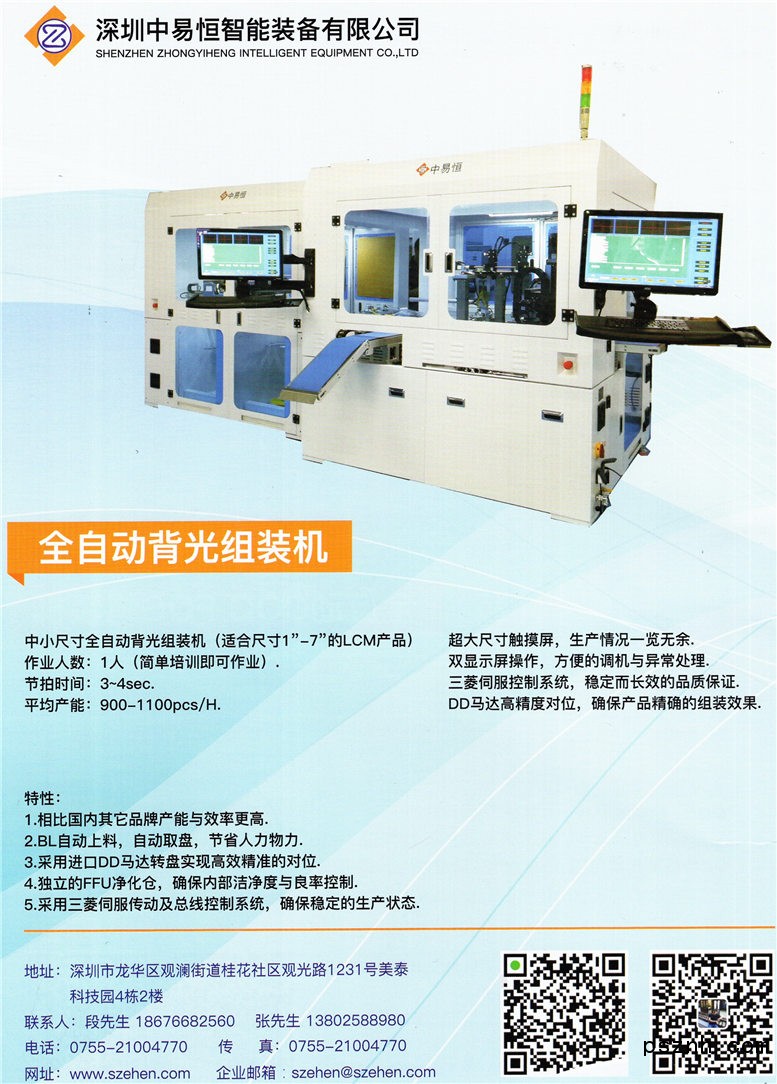 深圳市中易恒智能裝備有限公司 全自動背光組裝機 背光焊接機 AOI視覺檢測設備