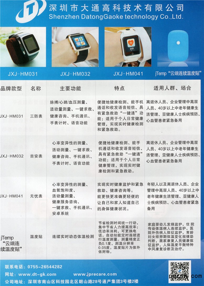 公司一直致力于研發(fā)和銷售協(xié)助老年人預(yù)防心血管保健型智能手表---Jwotch腕寶的整機(jī)和模組方案,產(chǎn)品集現(xiàn)代生命傳感技術(shù)和物聯(lián)網(wǎng)技術(shù)于一體,該項(xiàng)目是歸國(guó)華僑相建南博士帶領(lǐng)中美團(tuán)隊(duì)花費(fèi)十三年之久取得的輝煌成就,是用科學(xué)為人類健康服務(wù)的典范 。