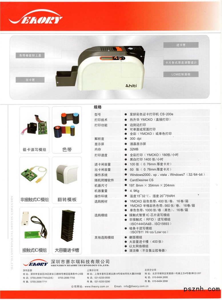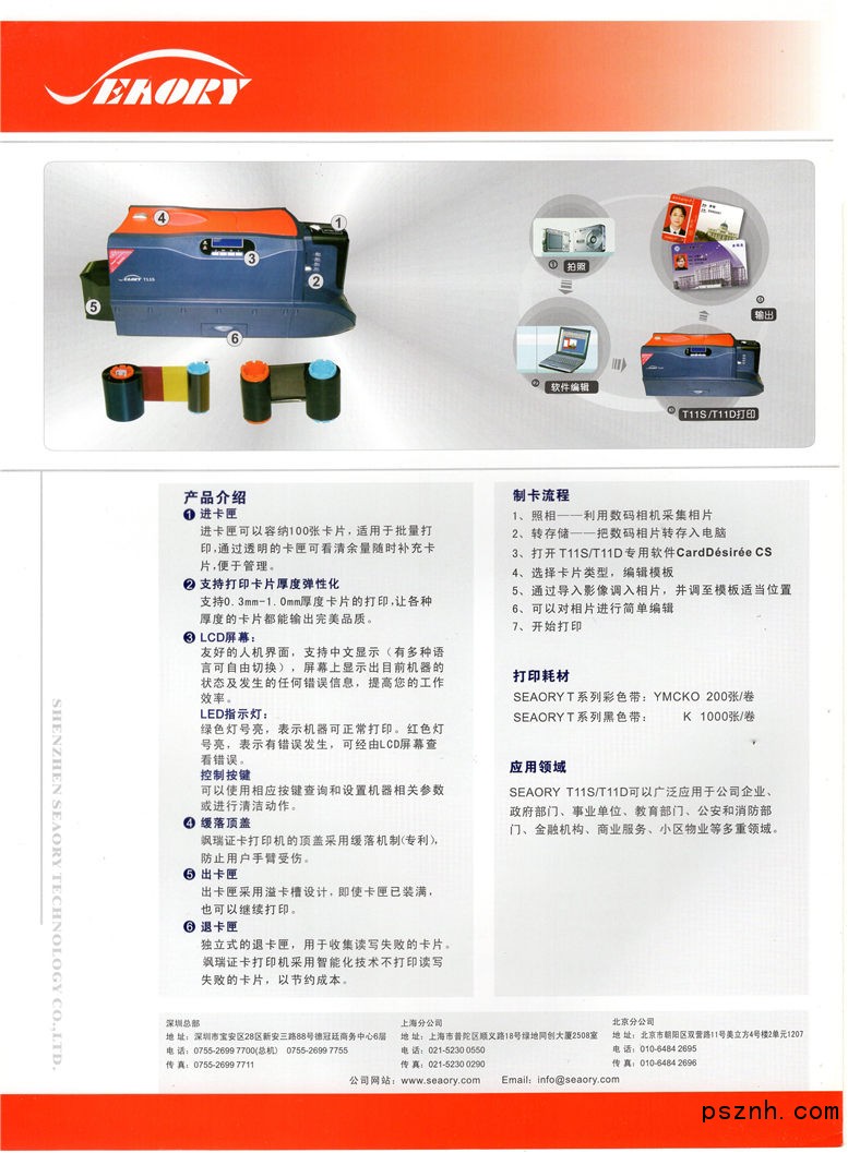 個性化發(fā)卡設備方面,我們是中國HiTi公司的證卡產(chǎn)品中國總代理,并同時代理DataCard、DIS、Zebra、Evolis等公司的證卡打印機產(chǎn)品。 2012年,我公司自有品牌產(chǎn)品“SEAORY(颯瑞)”證卡打印機已經(jīng)正式面市。