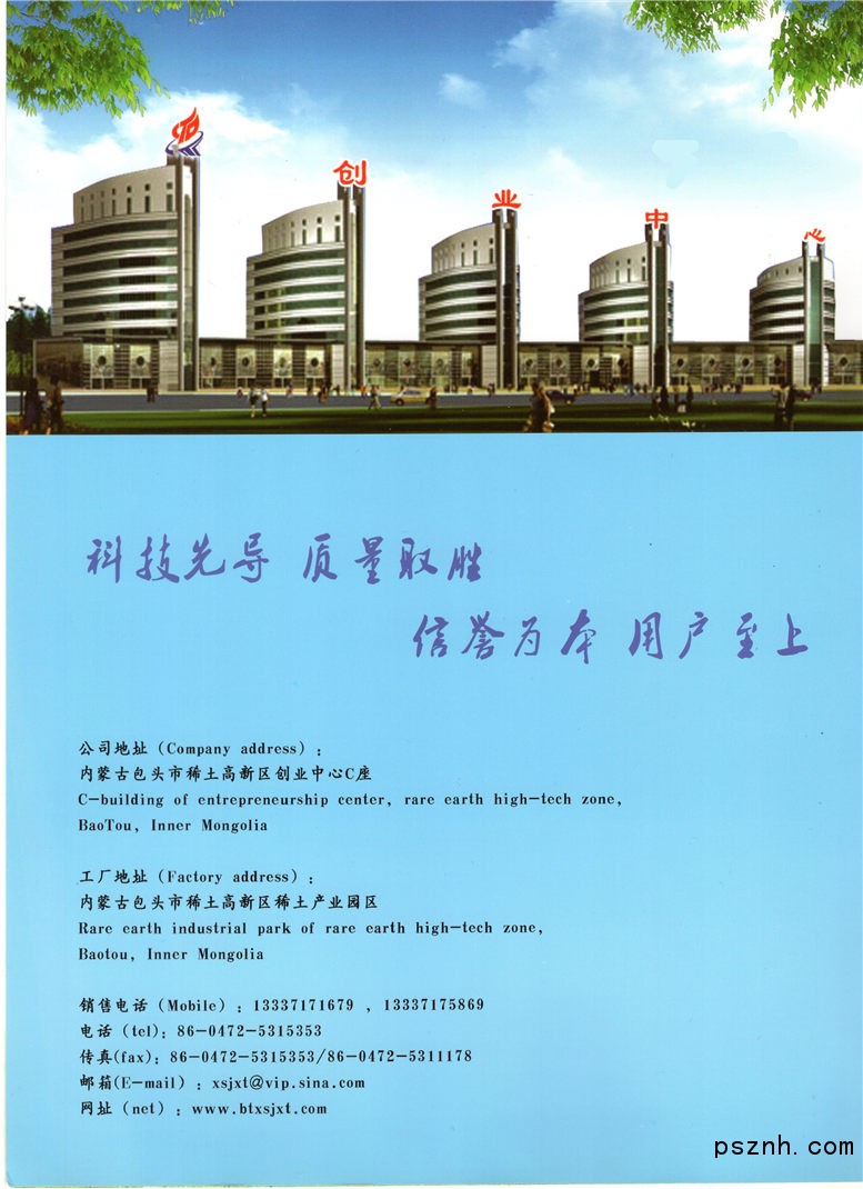 Baotou New  Century Rare Earth Co., LTD.is located in rare earth  industrial park of rare earth High-tech zone in Baotou.It covers an area of 12000 m2 and production area of 5000 m2.