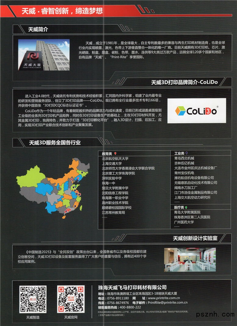 珠海天威泛凌貿(mào)易有限公司—天威旗下的國內(nèi)銷售公司。天威是全球大型的兼容/再生打印耗材制造商,20世紀80年代創(chuàng)立于中國珠海,擁有30年的專業(yè)打印耗材制造經(jīng)驗,并憑借自己的創(chuàng)新能力快速發(fā)展壯大。目前,天威擁有硒鼓、墨盒、色帶等9大類過萬款產(chǎn)品,在國內(nèi)各大城市擁有3000多家經(jīng)銷商,產(chǎn)品遠銷到全球120多個國家和地區(qū)。除為國際知名品牌OEM加工外,自有“天威”、“Print-Rite”品牌在國際上也富有盛名。