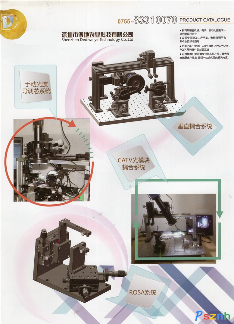 深圳市得地為業(yè)科技有限公司 是一家集光學(xué)、精密機(jī)械、電子、自動(dòng)化控制于一體的高科技企業(yè)。公司專業(yè)研發(fā)生產(chǎn)手動(dòng),電動(dòng)位移平臺(tái)200余款標(biāo)準(zhǔn)型號(hào),各種高精度對(duì)準(zhǔn)系統(tǒng),產(chǎn)品已形成系列化,標(biāo)準(zhǔn)化,國(guó)內(nèi)多家科研單位、光通訊設(shè)備廠商、高精密自動(dòng)化設(shè)備廠商等廣泛使用我們的產(chǎn)品,贏得眾多客戶長(zhǎng)期一致好評(píng)。