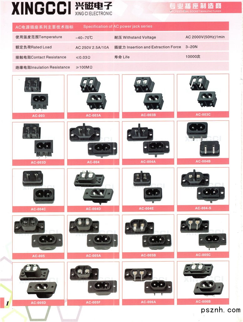 樂(lè)清市興磁電子科技有限公司專業(yè)從事AC電源插座、八字座、梅花座的開(kāi)發(fā)、研制和生產(chǎn)。 “十年磨一劍”,經(jīng)歷了大浪淘沙的洗禮,在強(qiáng)手如林的競(jìng)爭(zhēng)中摸索出一條適合自己可持續(xù)發(fā)展的道路 。 |