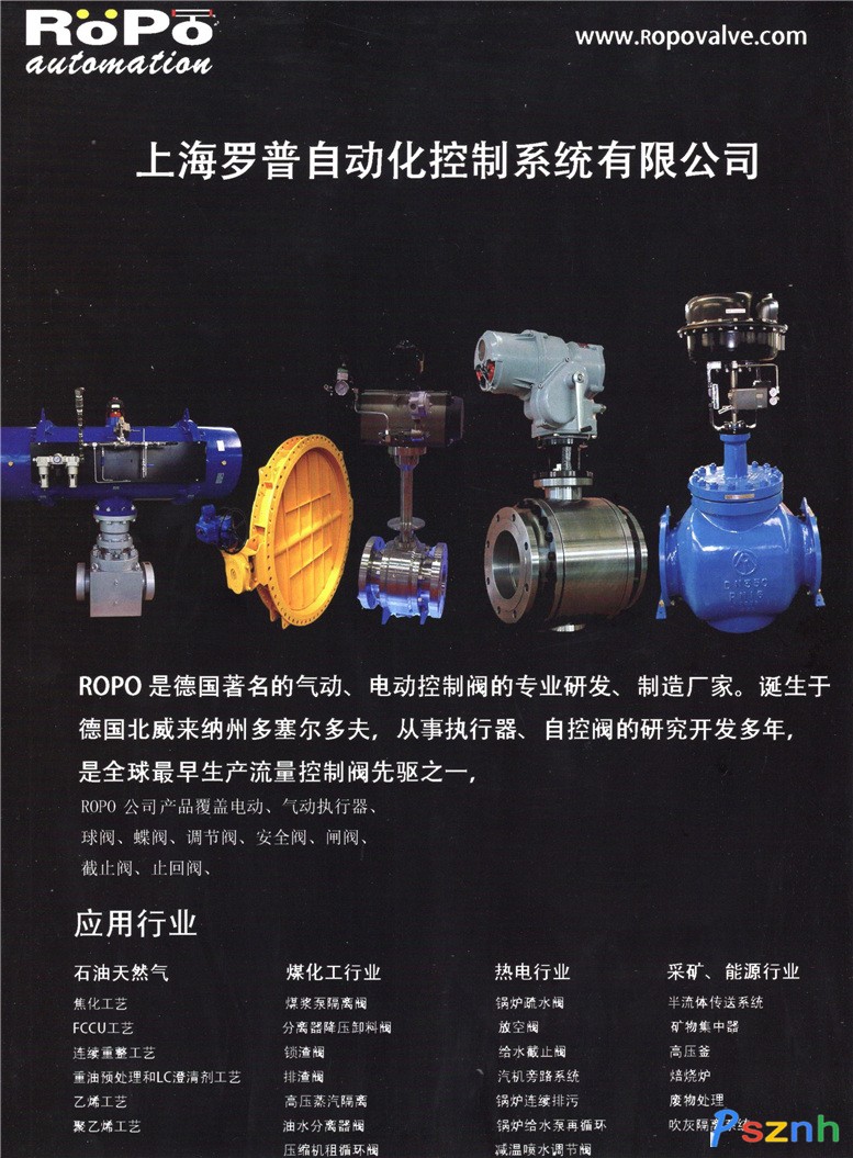羅普的產(chǎn)品主要是氣動/電動執(zhí)行器、氣動/電動球閥、蝶閥、氣動調(diào)節(jié)閥等,廣泛應(yīng)用于石油、石化、天然氣、冶金、電廠、造紙、食品、污水處理等多領(lǐng)域,尤其適用于惡劣情況條件下的遠(yuǎn)程控制,為各類流體工程提供完美的成套解決方案。 隨著中國工業(yè)空前快速發(fā)展的步伐,ROPO將以自身先進(jìn)的技術(shù),優(yōu)良的品質(zhì)為中國工業(yè)化水平的進(jìn)一步提高而添磚加瓦,為廣大客戶能更加及時準(zhǔn)確的應(yīng)用ROPO產(chǎn)品而提供無微不至的服務(wù)。