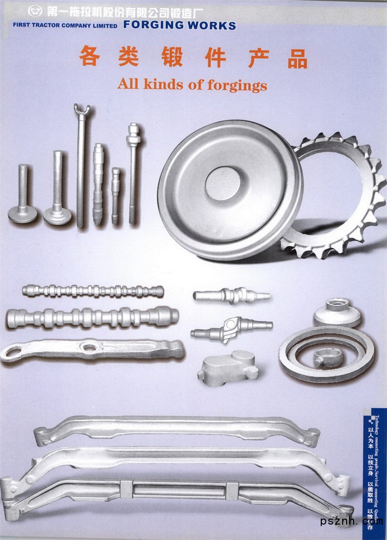 第一拖拉機(jī)股份有限公司始建于1955年,系特大型專業(yè)鍛造廠,特級(jí)安全級(jí)企業(yè),中國(guó)鍛壓協(xié)會(huì)常務(wù)理事單位和河南省鍛造協(xié)會(huì)會(huì)長(zhǎng)單位。在獲得 GB/T19002-1994-1509002:1994標(biāo)準(zhǔn)認(rèn)證的基礎(chǔ)上,2003年又通過(guò)了QS-9000:1998和ISO9001:2000標(biāo)準(zhǔn)質(zhì)量體系認(rèn)證,具備了完整的質(zhì)量保證體系。 我廠現(xiàn)有員工1200人,其中專業(yè)技術(shù)管理人員 117人,生產(chǎn)區(qū)占地面積10867方米,固定資產(chǎn)1.8102億元,年鍛件生產(chǎn)能力35000噸,品種800多個(gè)。 我廠設(shè)備齊全,現(xiàn)有大型鍛件(曲軸)生產(chǎn)線三條,小型曲軸生產(chǎn)線一條,建造了具有國(guó)際先進(jìn)水平的懸掛式熱處理調(diào)質(zhì)線,引進(jìn)了具有國(guó)際先進(jìn)水平的曲軸質(zhì)量定心機(jī),正在建設(shè)125Mn熱模鍛壓機(jī)生產(chǎn)線。還擁有數(shù)碼顯微鏡、三坐標(biāo)測(cè)量?jī)x等各種先進(jìn)的質(zhì)量檢測(cè)設(shè)備,鍛件質(zhì)量有 可靠的保證。 目前已和國(guó)內(nèi)30多個(gè)廠家建立了協(xié)作關(guān)系,可為用戶提供優(yōu)質(zhì)的農(nóng)業(yè)機(jī)械、動(dòng)力機(jī)械、工程機(jī)械、軍工外貿(mào)等各種類型的鍛件。鍛件重量從0.1kg至270kg。近年來(lái),引進(jìn)日本先進(jìn)技術(shù),開(kāi)發(fā)出多種曲軸系列鍛件,尤其是錘上模鍛件大型復(fù)雜曲軸工藝水平及鍛件質(zhì)量均居全國(guó)領(lǐng)先水平,部分產(chǎn)品,經(jīng)加工后出口到美國(guó)和東南亞。我廠不斷引進(jìn)吸收國(guó)內(nèi)外先進(jìn)技術(shù)工藝,應(yīng)用PRO/E和CAD軟件進(jìn)行工藝和模具設(shè)計(jì),具備較強(qiáng)的工藝開(kāi)發(fā)能力。我廠經(jīng)過(guò)對(duì) ISO14001環(huán)境管理和OSHMS職業(yè)安全健康管理體系的宣貫,通過(guò)了國(guó)家安全生產(chǎn)監(jiān)督管理局安全科技技術(shù)研究中心認(rèn)證中心的認(rèn)證,標(biāo)志著我廠“預(yù)控風(fēng)險(xiǎn)、清潔生產(chǎn)”進(jìn)入到一個(gè)新階段。