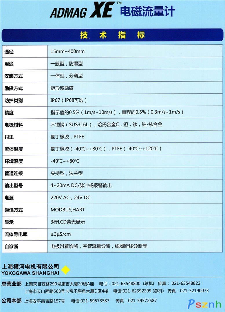 上海橫河電機(jī)有限公司 電磁流量計(jì) 渦街流量計(jì) 金屬轉(zhuǎn)子流量計(jì)