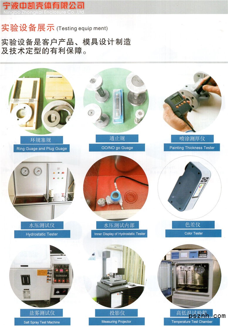 寧波中凱殼體有限公司創(chuàng)立于1993年,位于中國經(jīng)濟(jì)較活躍的長三角地區(qū)、杭州灣大橋的南橋端-浙江省慈溪市。公司占地面積20000多平方米,擁有固定資產(chǎn)6000多萬元,員工350余人。是一家集模具設(shè)計(jì)制作、產(chǎn)品開發(fā)、生產(chǎn)銷售一條龍的專業(yè)廠家,產(chǎn)品銷售遍布世界各國,是國內(nèi)同行業(yè)中的領(lǐng)頭羊。公司不斷引進(jìn)先進(jìn)設(shè)備,提高產(chǎn)品質(zhì)量,始終保持與國際同行業(yè)接軌,是眾多國內(nèi)外知名儀器儀表生產(chǎn)商的指定配套公司。公司以每年產(chǎn)值提增40%的速度闊步發(fā)展,并堅(jiān)持以質(zhì)量、誠信、專業(yè)、創(chuàng)新為宗旨,始終以真誠、主動(dòng)、周到、規(guī)范的服務(wù),不斷為客戶開發(fā)提供高端、先進(jìn)、質(zhì)優(yōu)的產(chǎn)品!