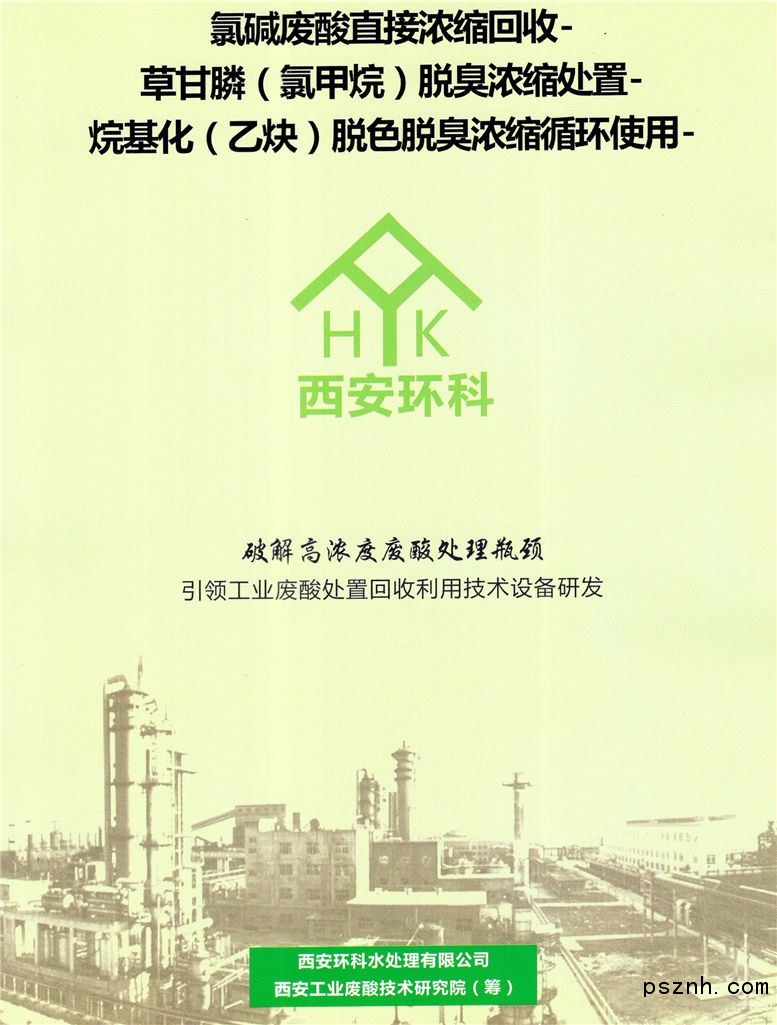 西安環(huán)科水處理有限公司經(jīng)過多年研究,成功研發(fā)出應(yīng)用于鋼鐵、鉛鋅冶煉、印刷電路板、制藥、冶金礦山、五氧化二釩等行業(yè)生產(chǎn)過程中產(chǎn)生的廢酸處理設(shè)備,研發(fā)了低濃度廢酸處理設(shè)備、高濃度有機(jī)廢酸處理設(shè)備(PVC、乙炔、烷基廢酸等)以及特種酸處理設(shè)備。為我國廢酸處理專業(yè)設(shè)備填補(bǔ)了空白,為節(jié)能減排做出非常大的貢獻(xiàn)。
