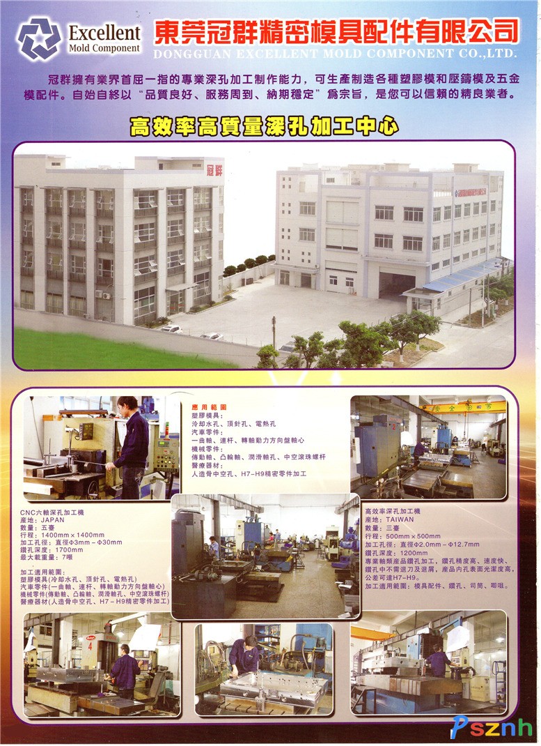 東莞冠群精密模具配件有限公司,集模具配件開發(fā)、設(shè)計(jì)、生產(chǎn)、銷售、服務(wù)於一體,具有模具製造30餘年的技術(shù)資本、全面推進(jìn)模具配件的標(biāo)準(zhǔn)化與專業(yè)化。