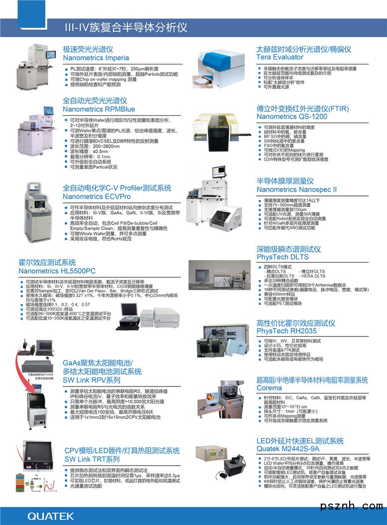QUATEK專業(yè)代理銷售電子精密測量及測試設備,涵蓋半導體、顯示屏、納米、物理、材料…等研究領域尖端的實驗室及半導體、LED/LCD、太陽能、電子工業(yè)、國防軍事工業(yè)、通訊、機械等高科技產業(yè)及應用。代理品牌制造廠商遍及美國、加拿大、英國、瑞士、德國、日本...等國。