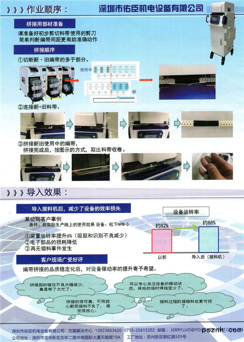 深圳市佑臣機(jī)電設(shè)備有限公司 成立于2009年,位于廣東省深圳市龍華新區(qū)龍華文化廣場(chǎng)附近,主要從事FUJI貼片機(jī)設(shè)備買賣;FUJI貼片機(jī)設(shè)備安裝、調(diào)試、培訓(xùn)、維修(包括控制卡修理)及簽訂保修合約;FUJI貼片機(jī)零配件及周邊設(shè)備銷售;代理銷售無鉛焊接工具系列,防靜電,凈化用品系列,電子、五金工具系列;點(diǎn)膠機(jī)及配件,生產(chǎn)設(shè)備,儀器儀表.公司秉承“顧客至上,銳意進(jìn)取”的經(jīng)營(yíng)理念,堅(jiān)持“客戶第一”的原則為廣大客戶提供優(yōu)質(zhì)的服務(wù)。
