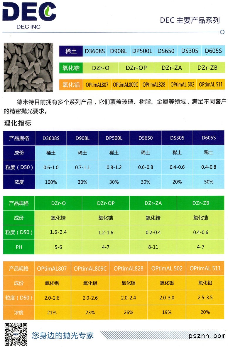 德米特(蘇州)電子環(huán)保材料有限公司(DEC)是集研發(fā),生產,銷售于一體的全港資公司。融合國內外先進技術,致力于生產包括樹脂拋光材料、玻璃研磨拋光材料及CMP等一系列高性能表面裝飾材料及電子環(huán)保材料等產品。 我們秉承“質量第一、客戶至上”的原則,建立了嚴格的質量控制體系,并獲得ISO9001認證。產品及服務獲得了國內外知名公司認證,并遠銷美國、歐洲及其他國家和地區(qū)