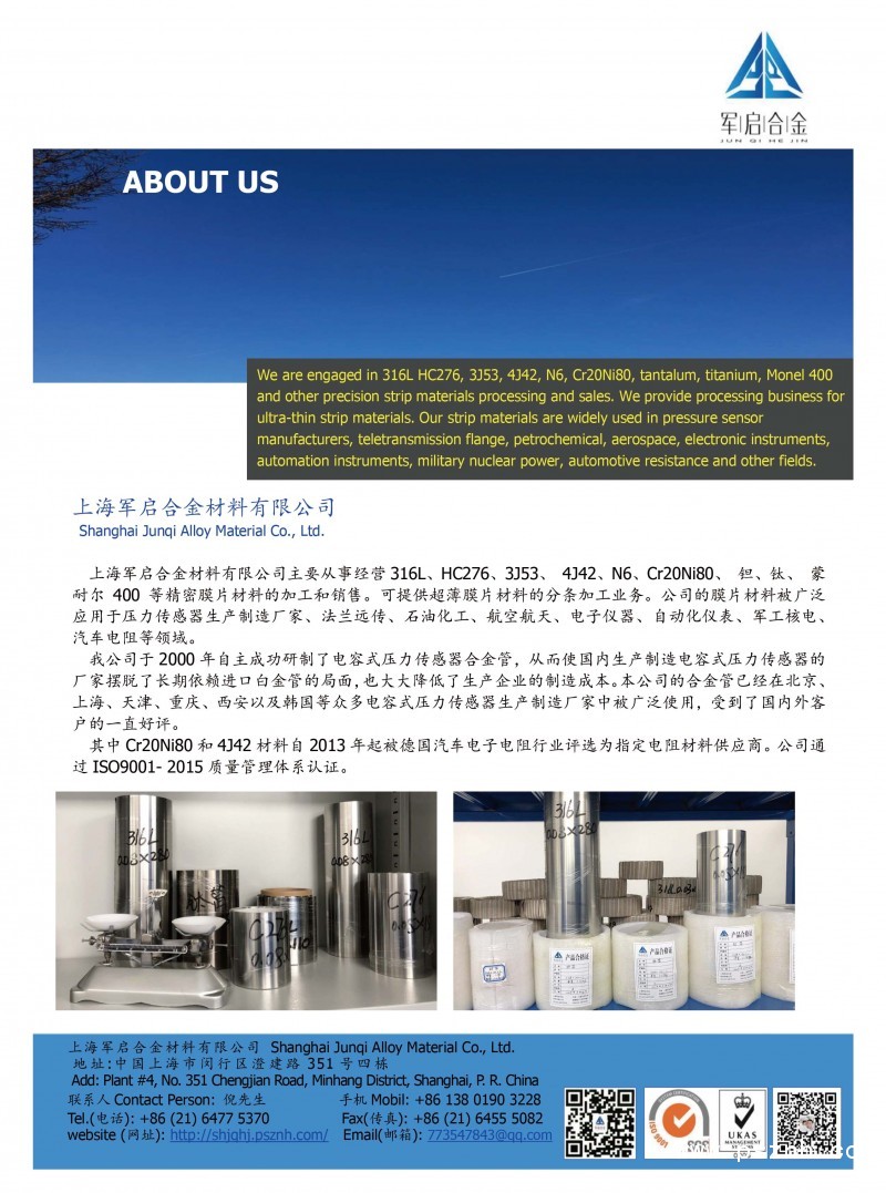 哈氏合金_帶材鉭膜片_傳感器合金管_蒙耐爾_Cr20Ni80 4J42 1J85_ 鎳等高溫合金_耐蝕合金精密合金-上海軍啟合金材料有限公司