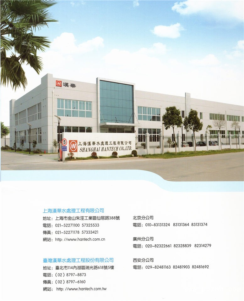 上海漢華水處理工程有限公司成立于1998年,為外商獨(dú)資企業(yè)。公司總部設(shè)在上海,目前在全國(guó)十余個(gè)城市都設(shè)有分公司及辦事處,銷(xiāo)售網(wǎng)絡(luò)遍及全國(guó)各地。公司專(zhuān)業(yè)經(jīng)營(yíng)各類(lèi)進(jìn)口及國(guó)產(chǎn)水處理配件、器材以及成套水處理設(shè)備。集多年專(zhuān)業(yè)水處理經(jīng)驗(yàn),為各相關(guān)行業(yè)提供所需的純水及超純水設(shè)備的整體規(guī)劃、設(shè)計(jì)和制造。公司秉承“研究發(fā)展,開(kāi)發(fā)創(chuàng)新”的企業(yè)精神和“追求百分之百客戶(hù)滿(mǎn)意度”的服務(wù)方針,于2003年通過(guò)了ISO9001質(zhì)量體系認(rèn)證,并于2009年12月獲得上海市“高新技術(shù)企業(yè)”稱(chēng)號(hào),使公司的管理及作業(yè)品質(zhì)更上了一個(gè)新臺(tái)階。多年磨礪,上海漢華水處理工程有限公司已發(fā)展壯大成為一個(gè)集生產(chǎn)、制造、研發(fā)、銷(xiāo)售、服務(wù)于一體的大型綜合性水處理公司。竭誠(chéng)為廣大新老客戶(hù)提供專(zhuān)業(yè)完善的產(chǎn)品和服務(wù)。