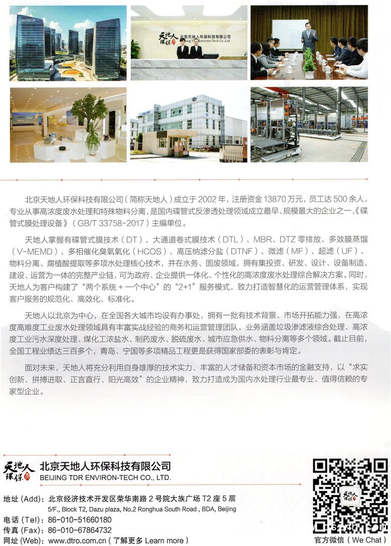 北京天地人環(huán)保科技有限公司 碟管式膜技術(shù)(DT) 大通道卷式膜技術(shù)(DTL) 高壓納濾分鹽技術(shù)(HP-NF) MBR技術(shù) DTZ零排放(DTZ) 多效膜蒸餾技術(shù)(V-MEMD) 多點(diǎn)擊:700 評(píng)論:0 查看原圖 |