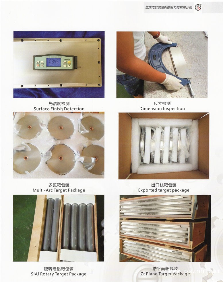 寶雞市歐凱濺射靶材科技有限公司是金屬材料、鈦、鋯、鎳、鉻、鈦合金、鎳合金、鉬、鈮等產(chǎn)品專(zhuān)業(yè)生產(chǎn)加工的有限責(zé)任公司,公司總部設(shè)在陜西寶雞,寶雞歐凱濺射靶材科技有限公司擁有完整、科學(xué)的質(zhì)量管理體系。