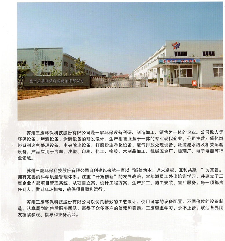 上海三鷹涂裝設(shè)備有限公司是一家涂裝設(shè)備科研、制造加工、銷售為一體的企業(yè)。公司致力于環(huán)保設(shè)備、烤漆設(shè)備、涂裝設(shè)備的研發(fā)設(shè)計、生產(chǎn)銷售服務(wù)于一體的專業(yè)廠家企業(yè)。自創(chuàng)建以來就一直以“誠信為本,追求卓越,互利共贏 ”為宗旨。