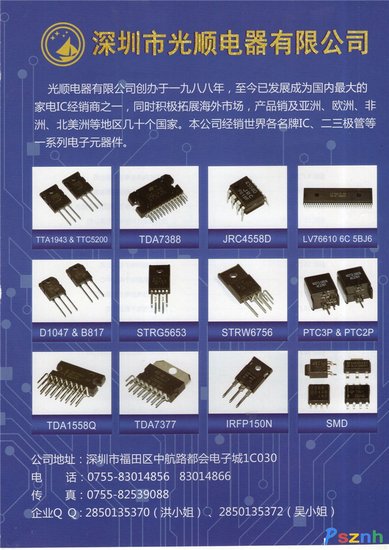 深圳市順發(fā)光電子有限公司是一家專業(yè)經(jīng)營(yíng)電子元器件的大型供應(yīng)商.本公司以"誠(chéng)信為本,客戶為重"的宗旨,盡量滿足客戶的需求,竭誠(chéng)為廣大客戶提供優(yōu)質(zhì)服務(wù). 主營(yíng):電子元器件,集成電路.