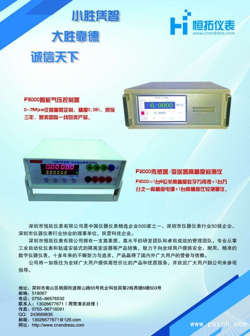 深圳市恒拓儀表有限公司是中國(guó)儀器儀表精選企業(yè)500家之一、深圳市儀器儀表行業(yè)50強(qiáng)企業(yè)、深圳市儀器儀表行業(yè)協(xié)會(huì)的理事單位、民營(yíng)科技企業(yè)。