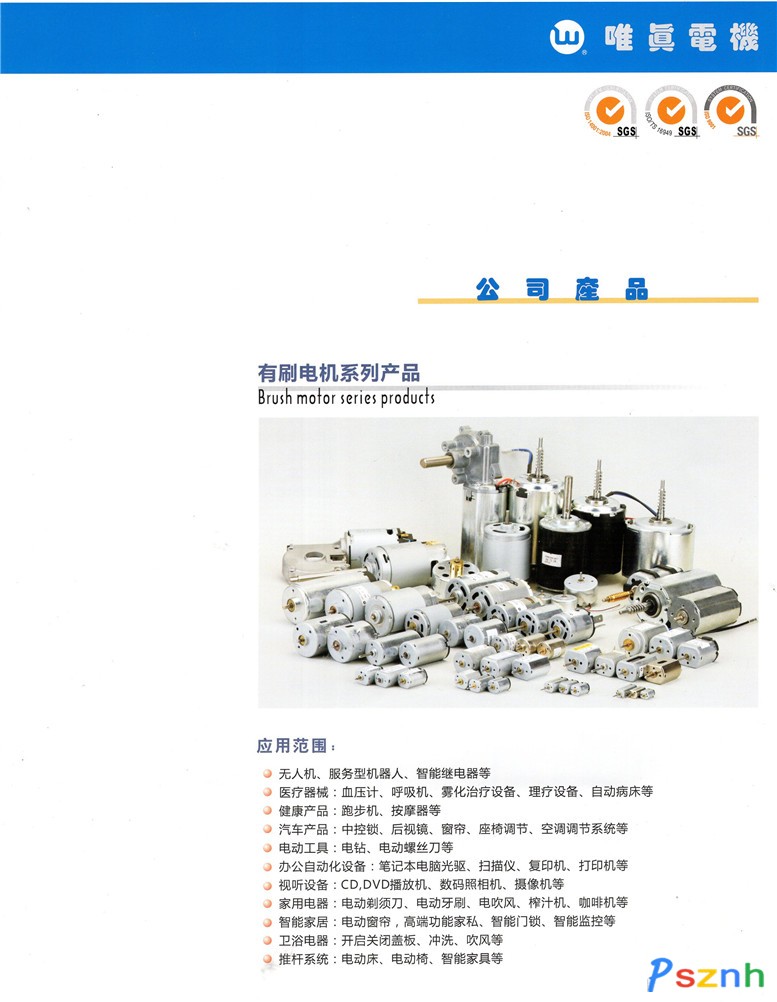 深圳市唯真電機(jī)有限公司,國(guó)家高新技術(shù)企業(yè),超過二十年的專業(yè)開發(fā)和生產(chǎn)微特電機(jī)經(jīng)驗(yàn),具有很強(qiáng)的技術(shù)開發(fā)能力和制造能力,在深圳、合肥擁有2個(gè)生產(chǎn)基地,已獲得40多項(xiàng)國(guó)家級(jí)專利。產(chǎn)品廣泛應(yīng)用于無人機(jī)、服務(wù)型機(jī)器人、汽車系統(tǒng)、視聽音響、辦公設(shè)備、通訊設(shè)備、數(shù)碼相機(jī)、家用電器、辦公家具、電動(dòng)工具、醫(yī)療器械、智能家居(智能門鎖/智能窗簾)、安防監(jiān)控、智能電機(jī)繼電器、個(gè)人護(hù)理、銀行設(shè)備、航模、衛(wèi)浴電器、平衡車、電動(dòng)車、自動(dòng)化控制設(shè)備(Auto-control equipment)、儀器儀表(instrument)等眾多行業(yè)?!?br />