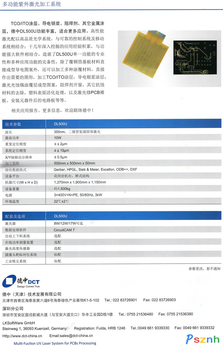德中(天津)技術(shù)發(fā)展股份有限公司 激光設(shè)備 快速電路板制作成套設(shè)備 PCB 皮秒 UV激光加工 激光直接刻板