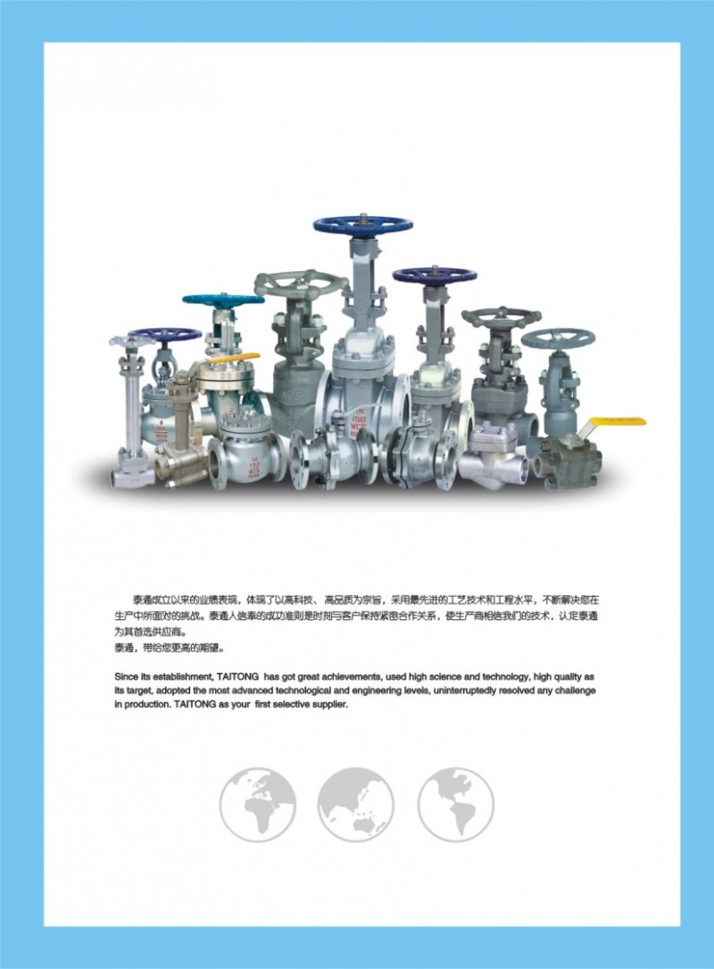 浙江泰通閥門有限公司是中國外向型、集團型閥門加工生產(chǎn)制造企業(yè)之一;由泰通集團總投資人民幣2000多萬元在全球聞名的泵閥之鄉(xiāng)——永嘉縣甌北鎮(zhèn)東甌工業(yè)區(qū)興建現(xiàn)代化的泰通工業(yè)園,占地面積25000多平方米,建筑面積達到20000多平方米。公司技術(shù)力量雄厚,設(shè)備精良,擁有數(shù)控車削中心,高效,高精度加工專業(yè)機器,現(xiàn)代化探傷設(shè)備等各類加工檢測設(shè)備200多臺。企業(yè)先后通過了IS090001,API,CE及AZ國際認證。