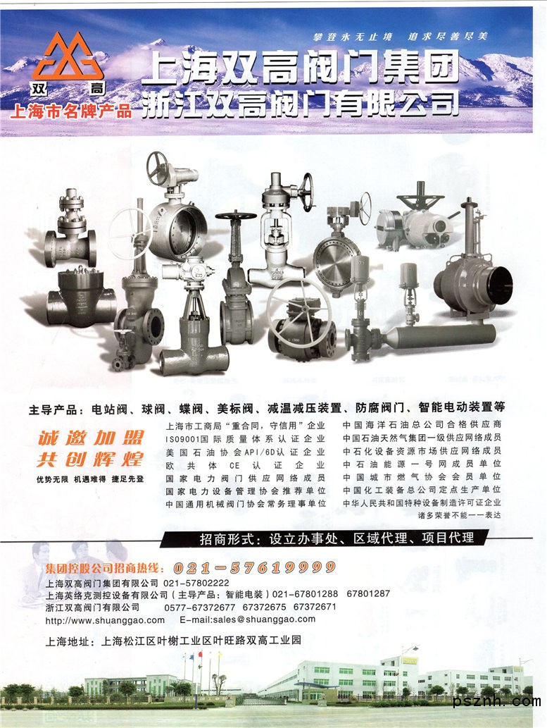 上海雙高閥門(mén)(集團(tuán))有限公司座落在上海市松江區(qū)葉榭工業(yè)區(qū)(G15高速葉新公路出口),環(huán)境優(yōu)雅,交通便利。經(jīng)過(guò)近三十年的拼搏和發(fā)展,已成為集設(shè)計(jì)、科研開(kāi)發(fā)、試驗(yàn)測(cè)試與生產(chǎn)制造相結(jié)合的大型專(zhuān)業(yè)化、現(xiàn)代化閥門(mén)企業(yè)。產(chǎn)品覆蓋電站、石化、冶金、天然氣、水利、輕工、市政等行業(yè),并以產(chǎn)品質(zhì)量好、品種齊全,設(shè)備成套性好,服務(wù)優(yōu)質(zhì),贏得海內(nèi)外客戶(hù)的贊譽(yù)和信賴(lài)。