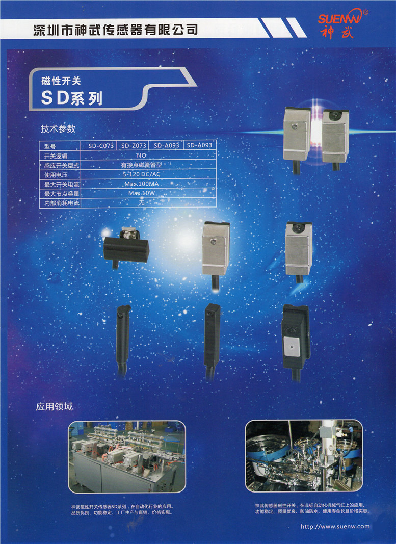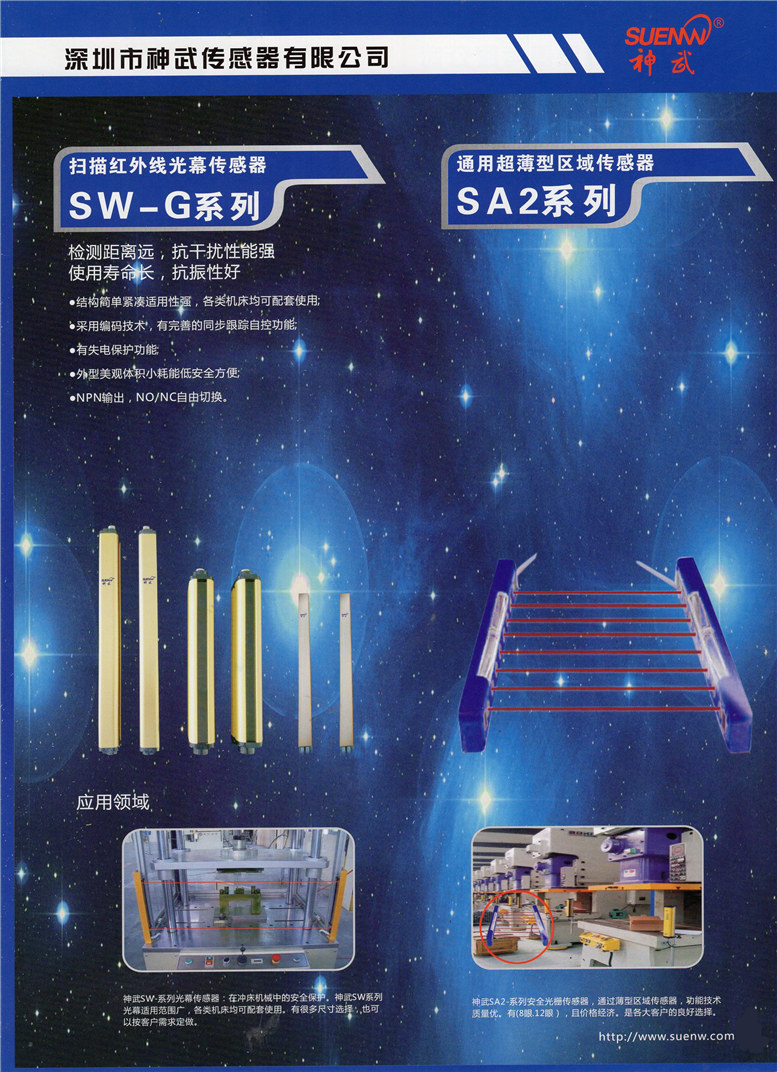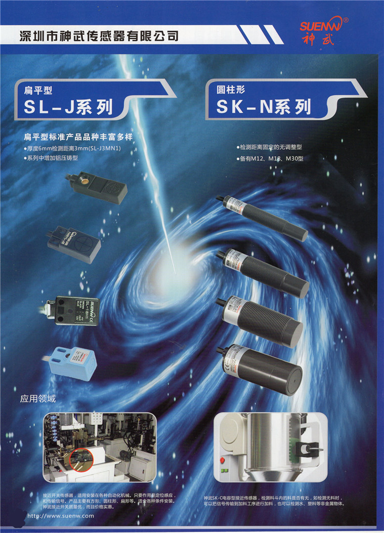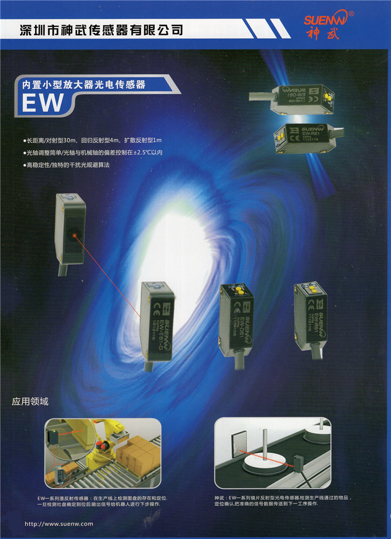 深圳市神武傳感器有限公司【深圳光電開關傳感器,東莞光電開關傳感器,深圳接近開關傳感器,東莞接近開關傳感器,傳感器生產(chǎn)廠家,深圳傳感器廠家,東莞傳感器廠家,光電開關傳感器廠家,接近開關傳感器廠家】是一家以日本技術為基礎,傳感器均在臺灣研發(fā)設計,中國生產(chǎn),銷售服務于一體的高新技術企業(yè)。產(chǎn)品廣泛應用于軍工、交通、安全、機器人、游戲機、塑膠、冶金、化工、紡織、煙草、食品、印刷、儀器等行業(yè)的工業(yè)機械設備及自動化生產(chǎn)線,具有定位檢測、信號傳送、自動計數(shù)、測速等作用。公司的所有產(chǎn)品在不斷吸納、融合國內外先進科技的同時,嚴格參照國際標準在中國研發(fā)和生產(chǎn),已達到歐美同類產(chǎn)品技術標準,可以同OMRON、SUNX、KEYENCE、Panasonic、RIKO、AUTONICS等公司的同類產(chǎn)品通用或互換使用。