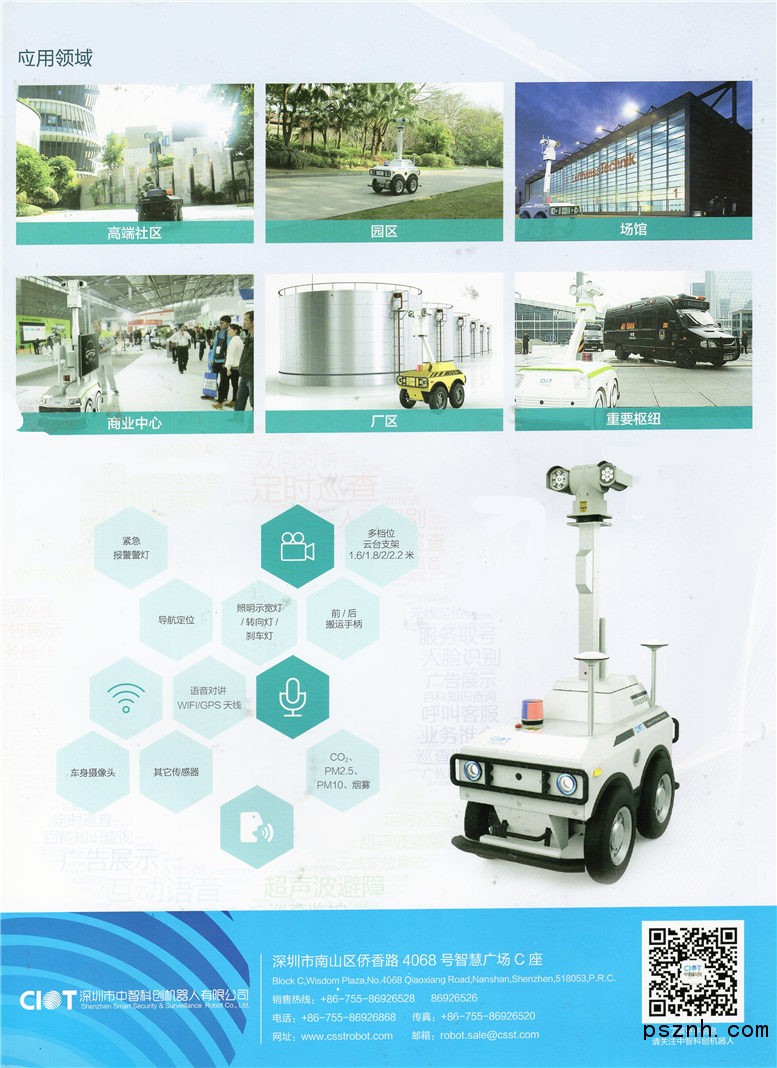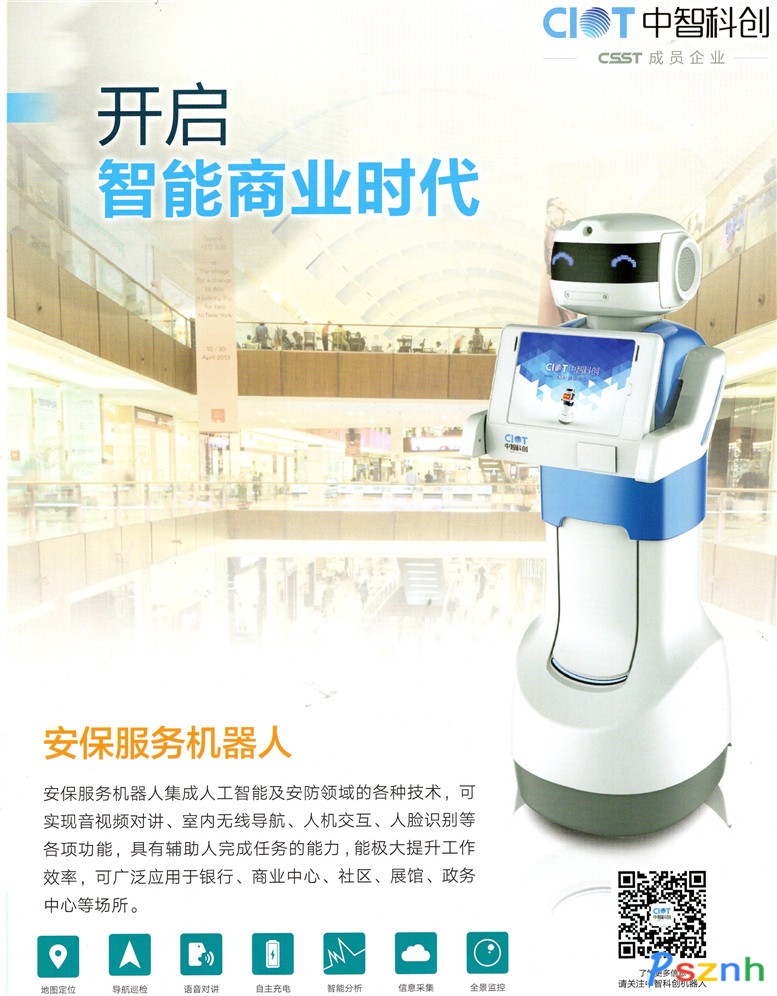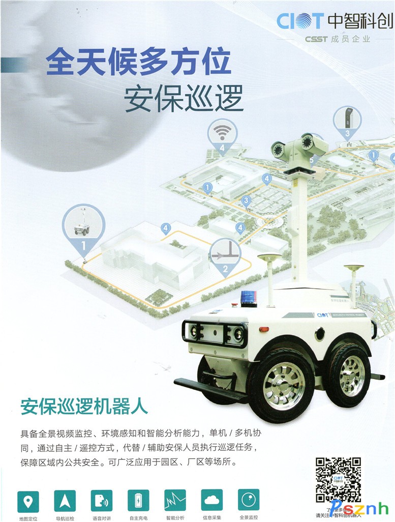 中智科創(chuàng)機器人有限公司 中國安防技術有限公司(CSST)成員企業(yè),自2011年起,CSST與香港中文大學合作開展安保機器人技術研究,中智科創(chuàng)依托CSST深厚的安防、安保系統(tǒng)集成及運營服務根基,以及多年的機器人研發(fā)技術沉淀,聚焦安防安保服務領域,多種技術相互融合、不斷創(chuàng)新,致力于成為全球領先的智能安保機器人及云安防平臺綜合運營商。先后開發(fā)安保服務機器人、安保巡邏機器人等系列產(chǎn)品,并廣泛應用于園區(qū)、金融、商業(yè)中心、社區(qū)、展館、政務中心等行業(yè),以機器人產(chǎn)品為核心,變革傳統(tǒng)安防模式,提出“動靜結合”的全方位、立體化新安防理念,打造安保服務新業(yè)態(tài)。