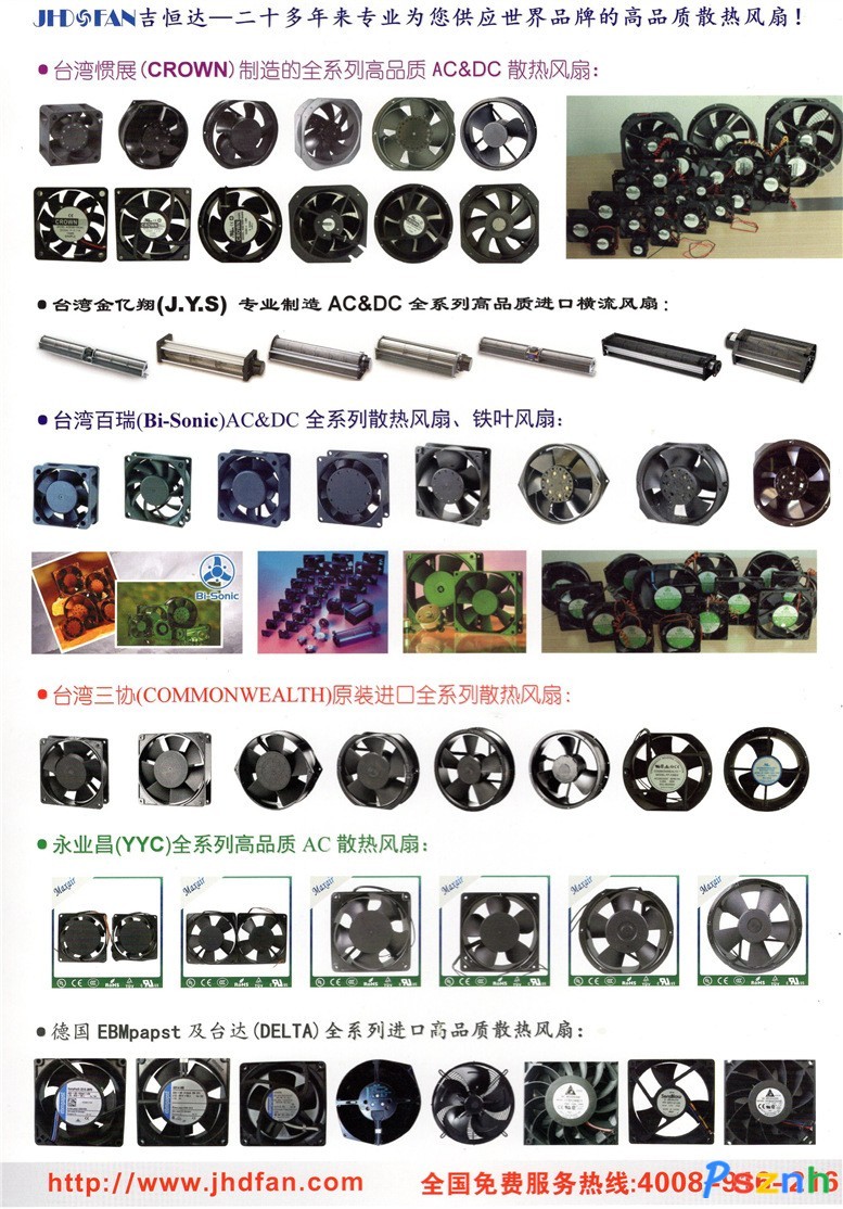深圳市吉恒達(dá)科技有限公司坐落在代表著中國(guó)高新企業(yè)的領(lǐng)航區(qū)—深圳南山。深圳,不僅是中國(guó)改革開(kāi)放最前沿的窗口,而且也是中國(guó)最美麗的濱海城市之一。公司創(chuàng)始人自1996年來(lái)到這里,就開(kāi)始專(zhuān)業(yè)從事臺(tái)灣及世界知名品牌散熱風(fēng)扇的銷(xiāo)售和推廣工作。憑借著近二十年來(lái)專(zhuān)業(yè)銷(xiāo)售和推廣進(jìn)口AC、DC、EC全系列軸流散熱風(fēng)扇、全金屬扇葉耐高溫及IP54防護(hù)等級(jí)以上的高品質(zhì)散熱風(fēng)扇、橫流風(fēng)扇、渦輪及離心式風(fēng)扇產(chǎn)品的歷史和責(zé)任,已擁有全球知名風(fēng)扇品牌:臺(tái)灣信灣(SINWAN)、慣展(CROWN)、皕瑞(Bi-Sonic) 、三協(xié)(Commonwealth)、金億翔(JYS)等在中國(guó)區(qū)域的總代理服務(wù)商授權(quán);也是德國(guó)EBMpapst、日本NMB、臺(tái)達(dá)(Delta)、建準(zhǔn)(SUNON)等品牌的直接供應(yīng)商。