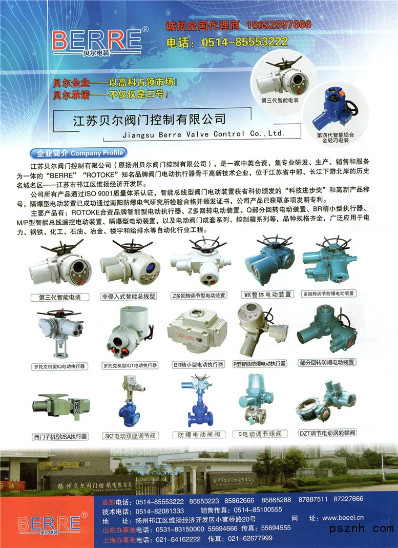 州貝爾閥門控制有限公司是一家中外合資老牌企業(yè),專業(yè)研發(fā)、設(shè)計、生產(chǎn)、銷售和銷售為一體的“貝BEIER爾”牌電動執(zhí)行器中外合資骨干高新企業(yè),屬國家電力設(shè)備和油田公司專業(yè)制造企業(yè)。所有產(chǎn)品通過ISO9001質(zhì)量體系認(rèn)證,企業(yè)開發(fā)的智能防爆型閥門電動裝置省科協(xié)頒發(fā)“科技進步獎”和新產(chǎn)品稱號,所有產(chǎn)品經(jīng)過合肥通用機械研究所檢測合格并推薦。其下屬擁有:上海湖泉電動閥門有限公司、艾美科閥門(溫州)等兩家大型閥門基地。貝爾企業(yè)位于江蘇省中部、長江下游北岸的歷史名城揚州 主導(dǎo)產(chǎn)品:西門子2SA3系列執(zhí)行器、西門子2SQ3系列電動執(zhí)行器、液晶顯示遙控系列閥門電動裝置、非侵入式系列閥門電動裝置、智能一體化系列閥門電動執(zhí)行器、防爆系列閥門電動裝置、DZW多回轉(zhuǎn)系列電動裝置、DQW部分回轉(zhuǎn)系列閥門電動裝置、部分回轉(zhuǎn)精小型電動執(zhí)行器以及電動閥門成套系列、電動閘閥,電動截止閥,電動球閥,電動蝶閥,電動調(diào)節(jié)閥及各種控制箱系列等品種規(guī)格齊全。廣泛應(yīng)用于電力、鋼廠、石油、冶金、化工、樓宇和給排水等自動化行業(yè)工程。 貝爾人始終致力于“科技領(lǐng)先、優(yōu)質(zhì)高效、顧客至上、遵信守約”的經(jīng)營理念。多年以來一直真心打造“為了一切客戶,一切為了客戶”的創(chuàng)新產(chǎn)品和服務(wù)。為建設(shè)成國內(nèi)執(zhí)行器行業(yè)品牌重振昔日輝煌而努力奮斗。竭誠歡迎海內(nèi)外廣大新老客戶到公司參觀、考查、洽談、指導(dǎo)工作!